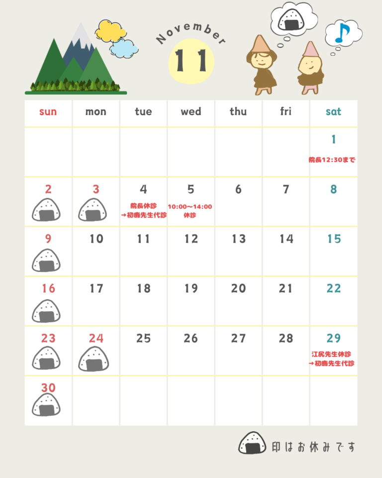 ※お休みの前後は混雑が予想されます。お時間に余裕をもってのご来院をお願いいたします。