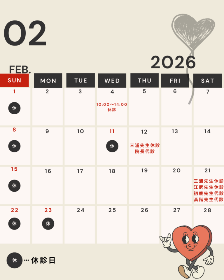 ※お休みの前後は混雑が予想されます。お時間に余裕をもってのご来院をお願いいたします。